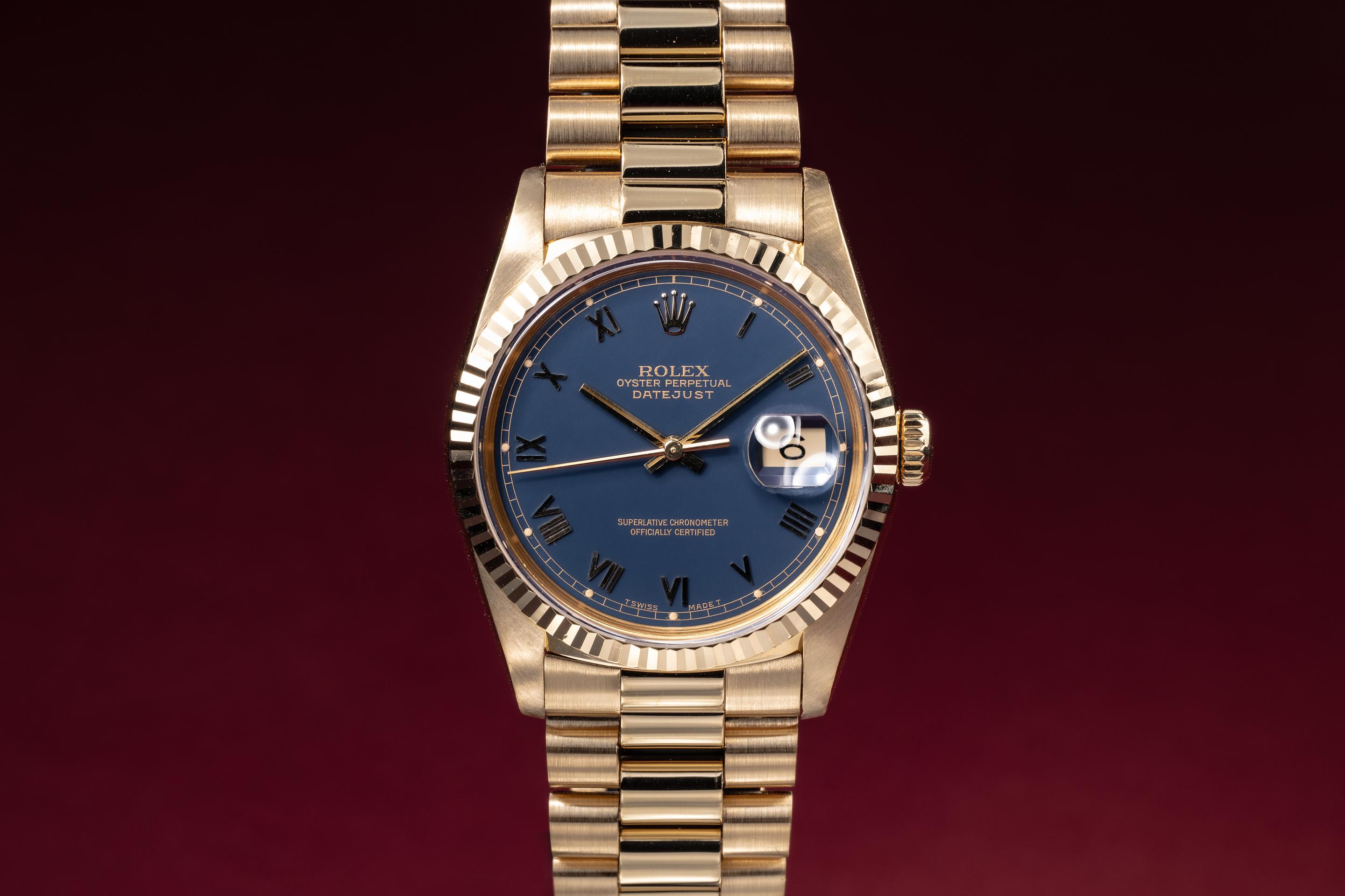 1988 Rolex 18K YG DateJust 16238 Blue Roman Dial