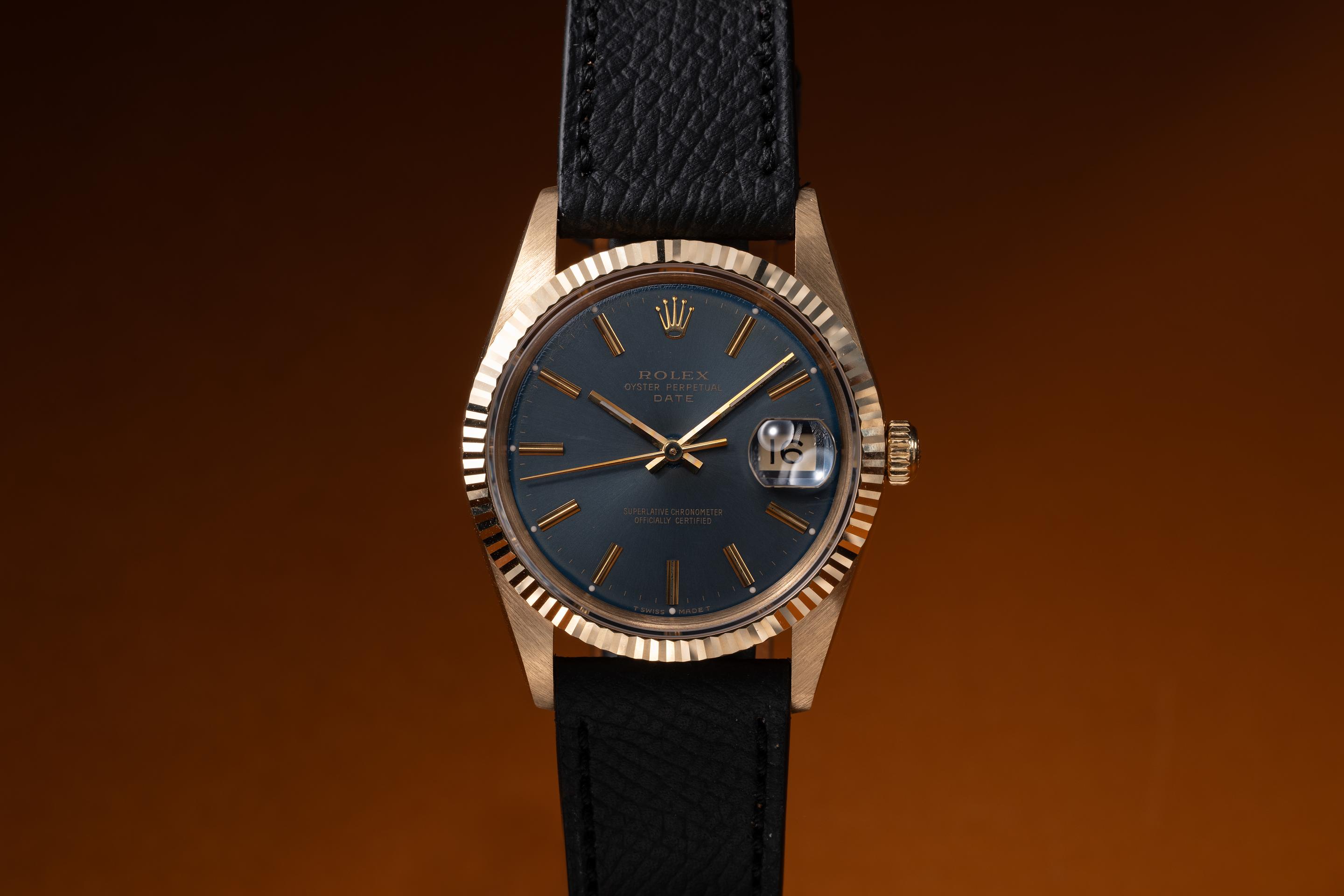 1991 Rolex 18K YG Oyster Perpetual Date 15238 Blue Dial