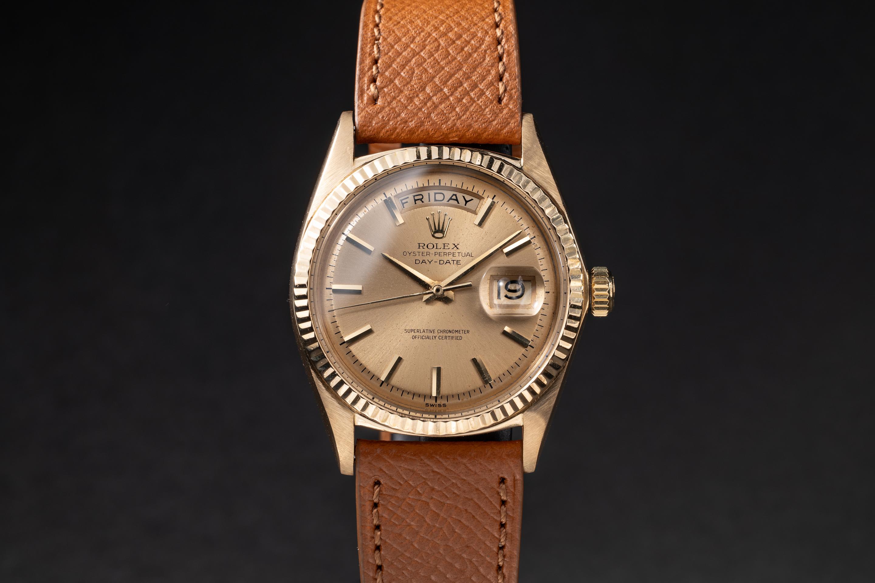 1963 Rolex 18K YG Day-Date 1803 No-Lume Champagne Dial