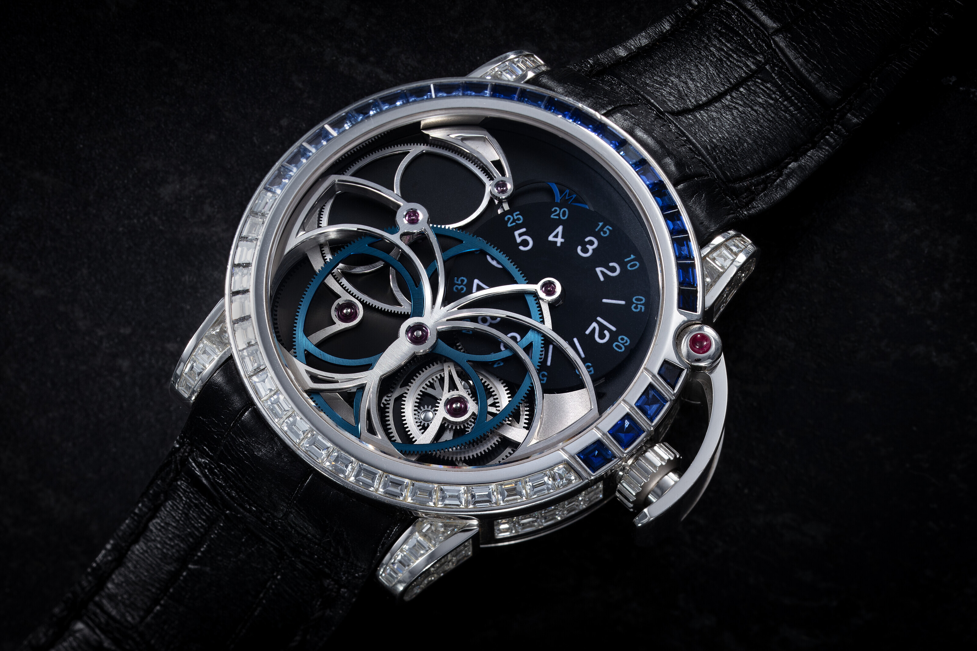 5: HARRY WINSTON & ANDREAS STREHLER, OPUS 7, A UNIQUE GOLD, DIAMOND AND SAPPHIRE-SET WRISTWATCH WITH SEMI-SKELETONISED MOVEMENT