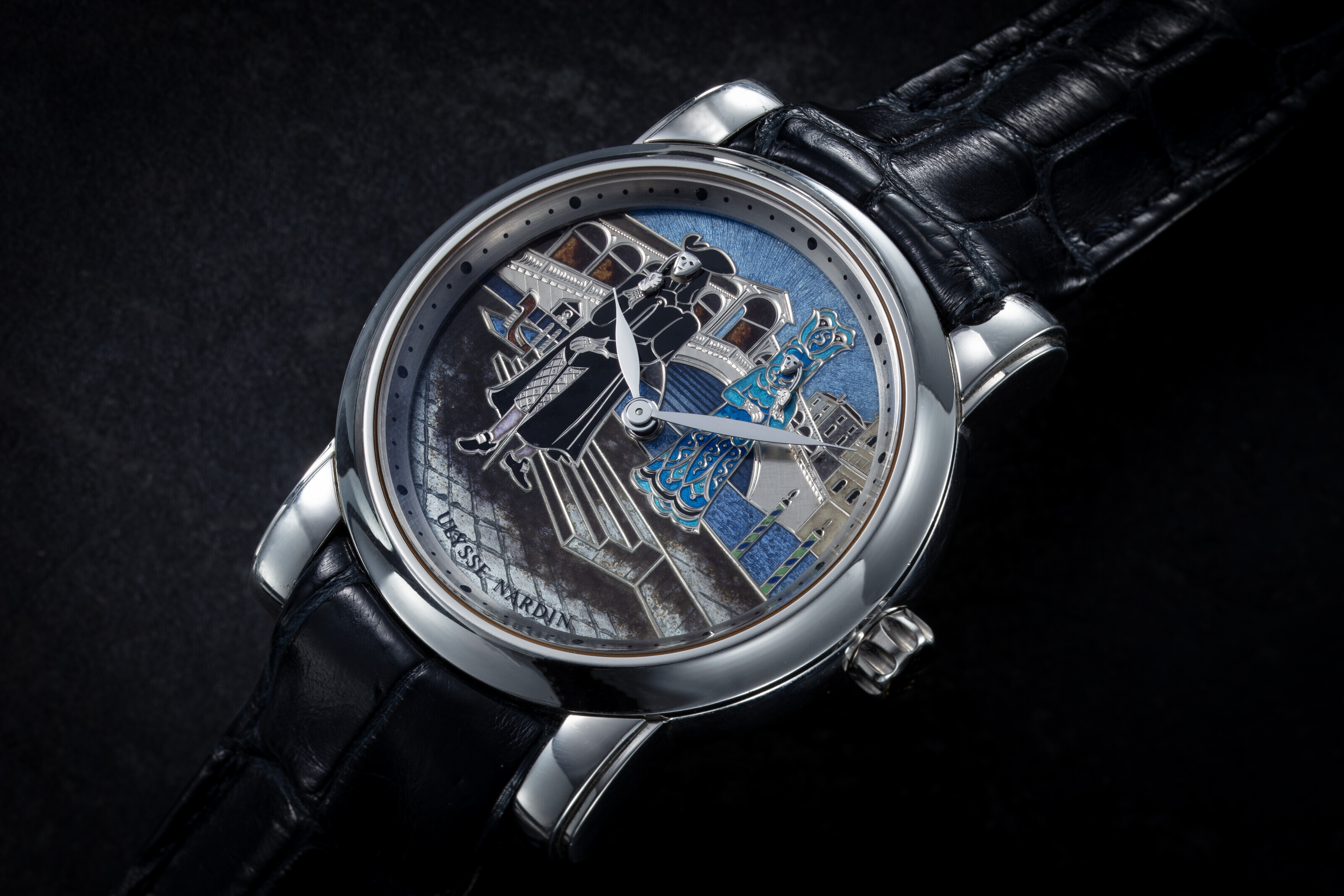 6: ULYSEE NARDIN, JAQUEMART VENICE REF. 719-63, A LIMITED EDITION PLATINUM MINUTE REPEATING AUTOMATA WRISTWATCH WITH CHAMPLEVÉ ENAMEL DIAL