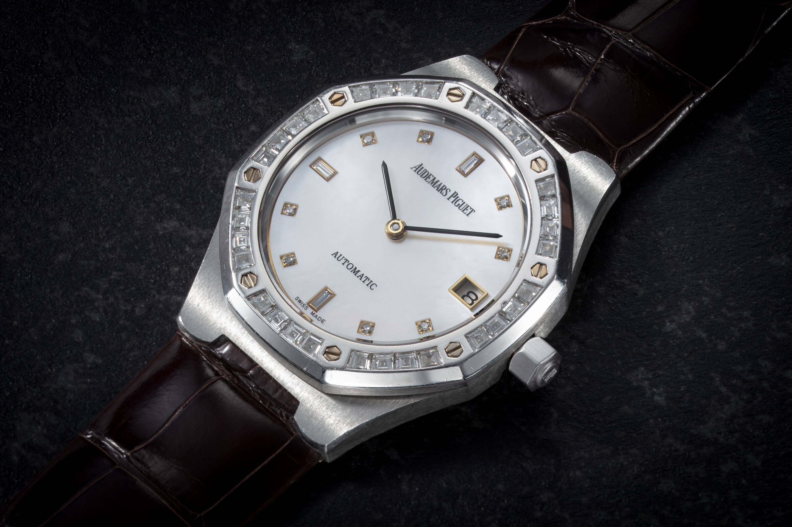 ROYAL OAK REF. 56346ST. AN ATTRACTIVE STEEL AND DIAMOND-SET WRISTWATCH WITH LAPIS LAZULI DIAL
