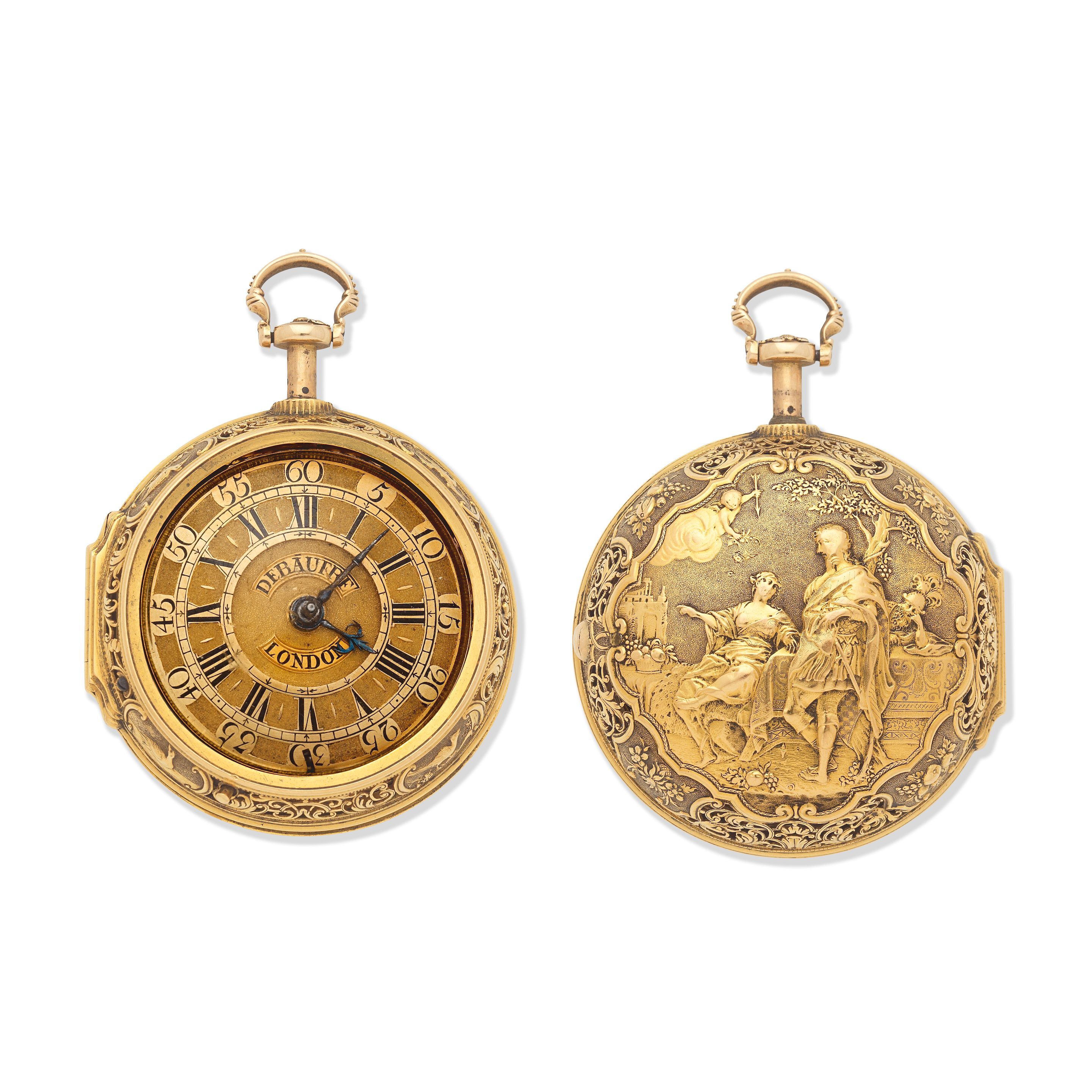 1: Ellicott. A fine and exceptional gold key wind pair case half quarter repeating pocket watch with repoussé decoration attributed to George Moser Founding member of the Royal AcademyCirca 1767
