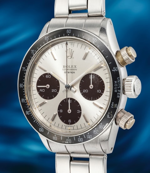 115: Ref. 6264 An extraordinarily rare, extremely attractive, and important yellow gold chronograph wristwatch with “Paul Newman Lemon” dial, brown “tropical” subsidiary registers and outer track, bracelet and guarantee