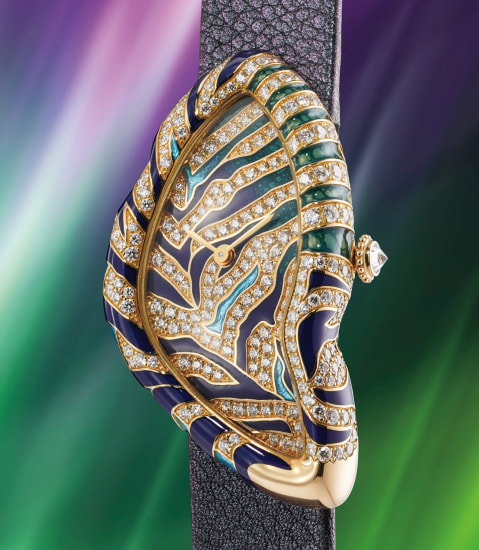 128: Ref. HP101529 A highly rare and attractive enamel and diamond-set asymmetrical wristwatch with certificate and presentation box, number 12 of a limited edition of 50 pieces