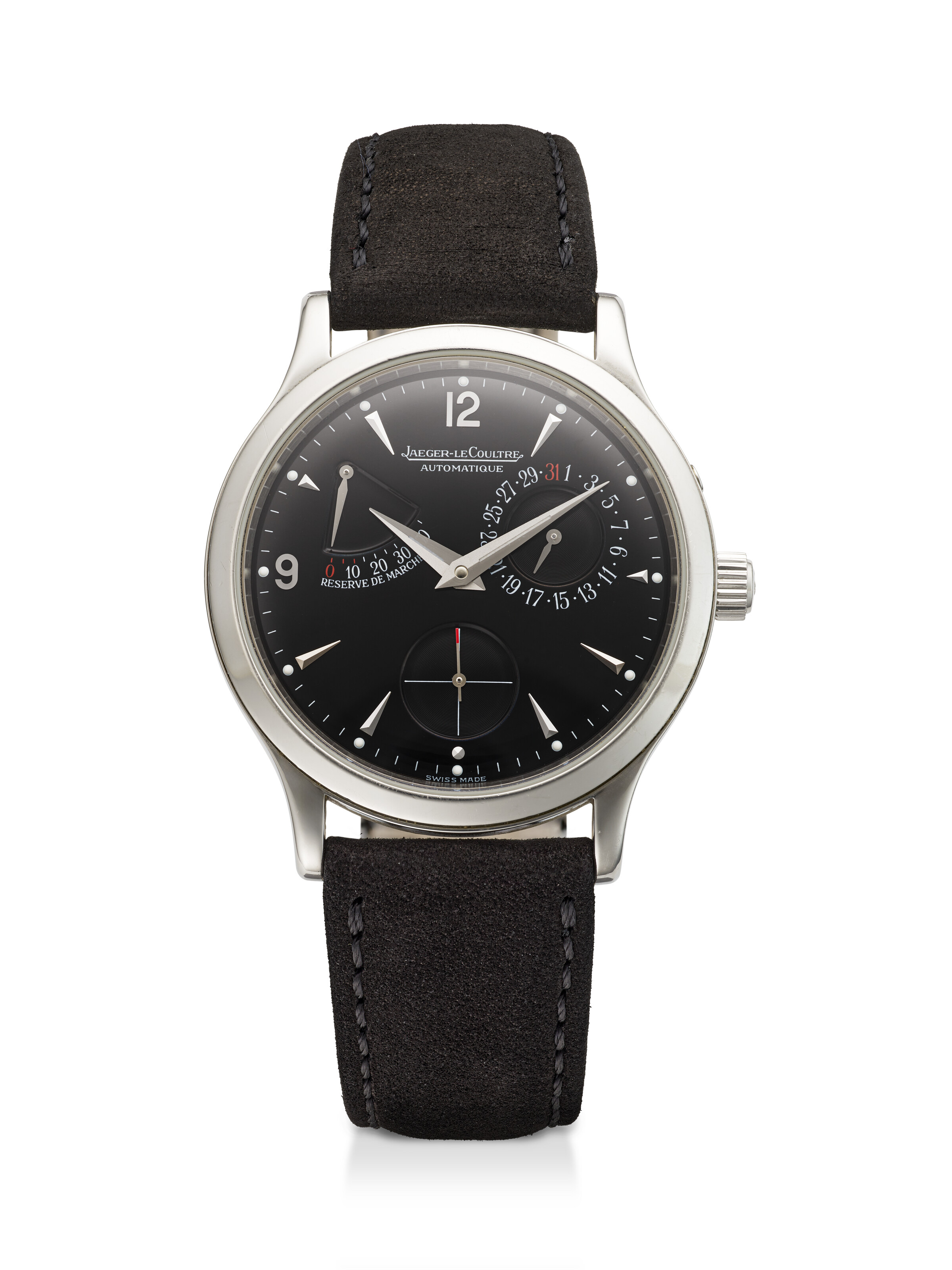 340: JAEGER-LECOULTRE, STAINLESS STEEL 'MASTER RESERVE DE MARCHE', REF. 140.8.93.S