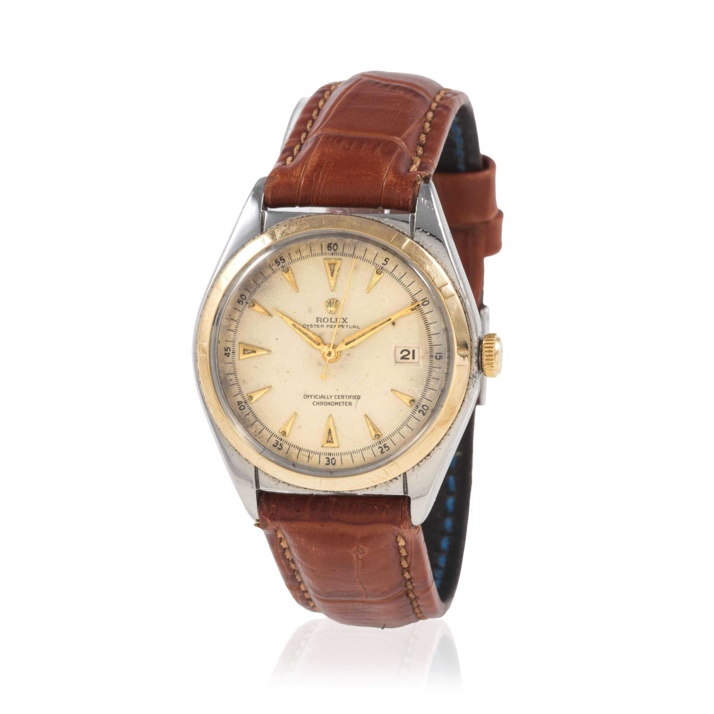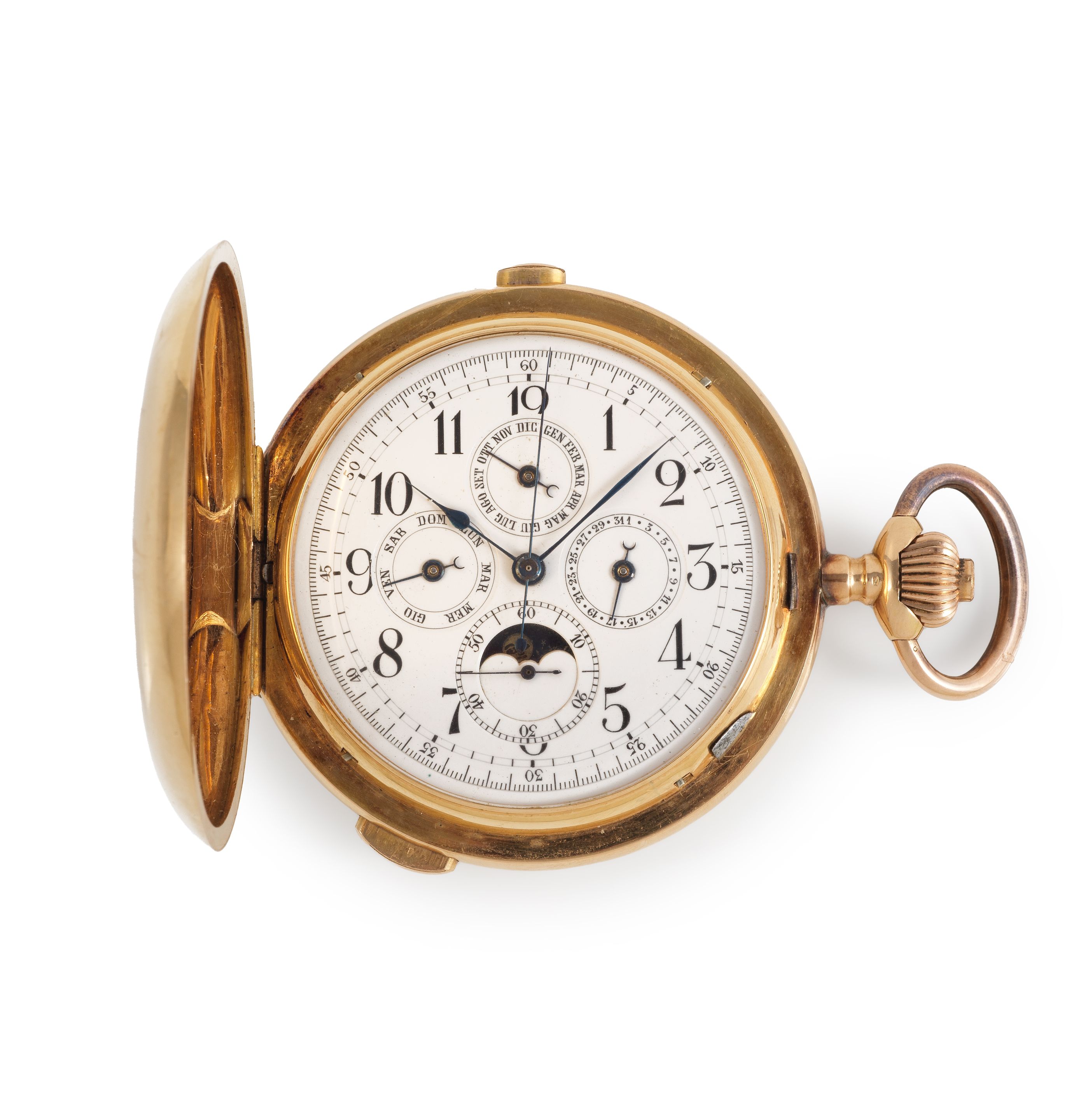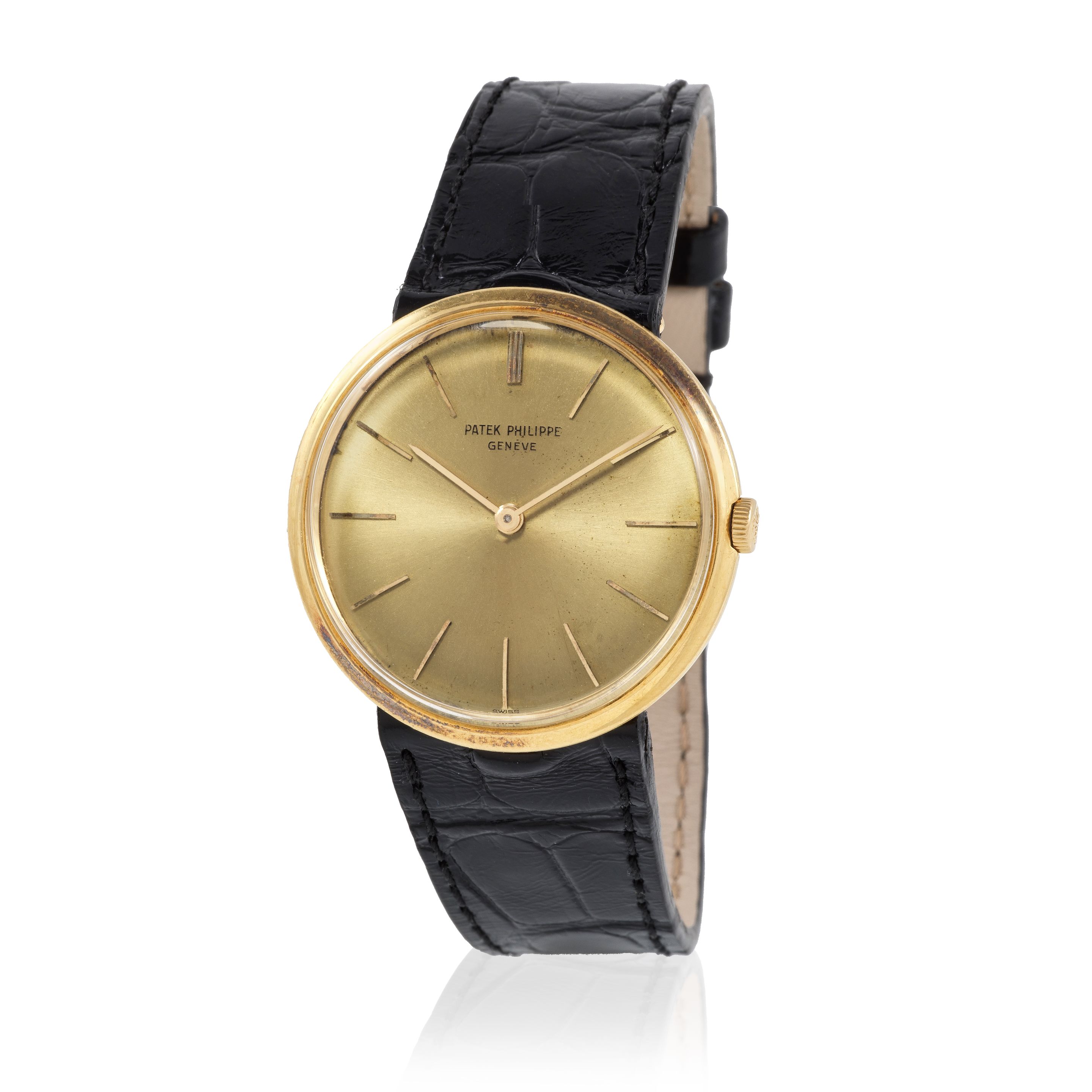 32: Patek Philippe. A fine 18K gold automatic perpetual calendar wristwatch with moon phase and sigma dial Patek Philippe. Belle montre bracelet en or jaune 18K (750) calendrier perpétuel, phases de lune et cadran sigma mouvement automatique Perpetual Calendar, Ref: 3940, Purchased 22nd November 1999