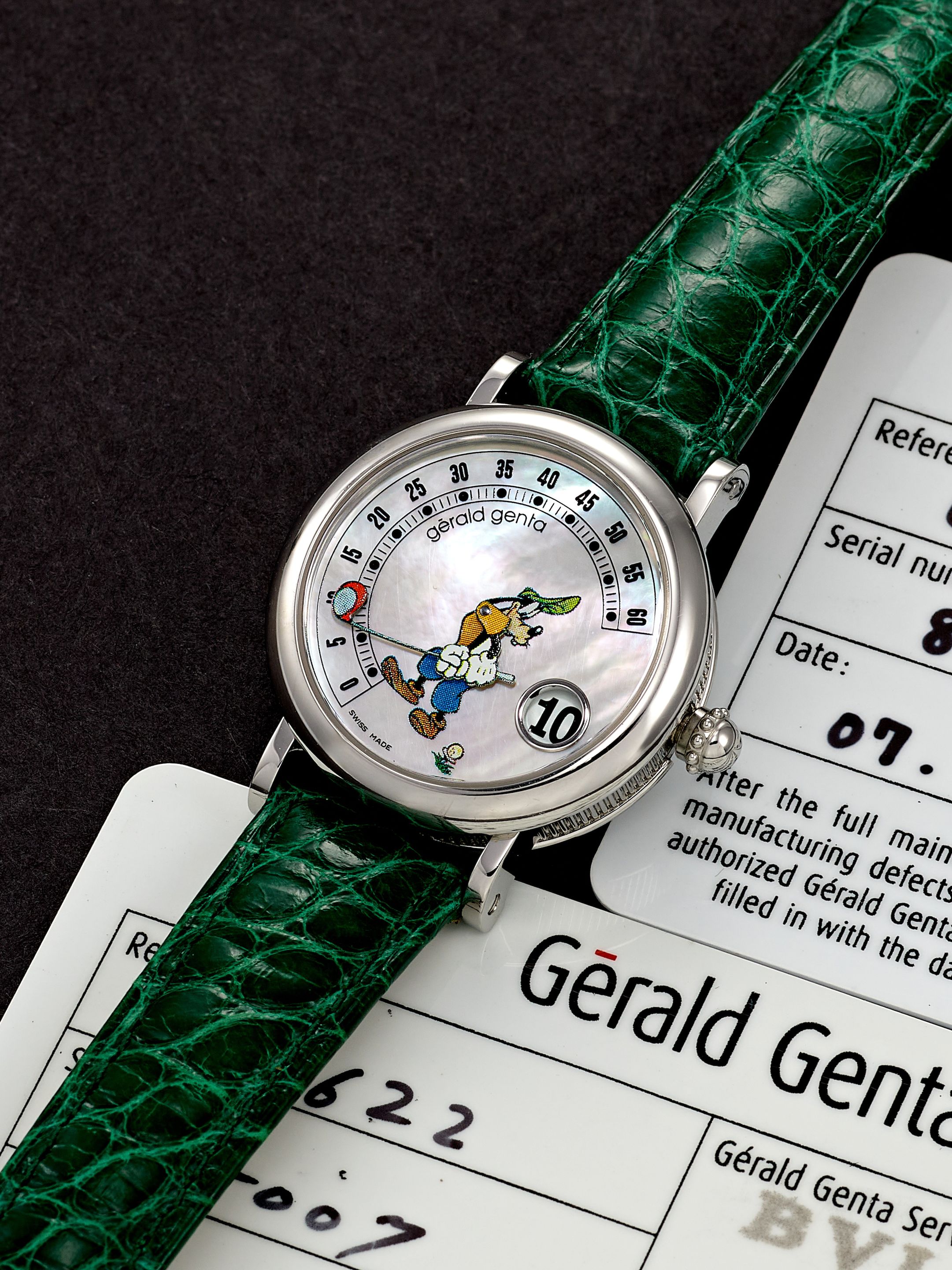 1029: GÉRALD GENTA | RETRO FANTASY "GOOFY", REF.G.3622, A STAINLESS STEEL JUMPING HOURS WRISTWATCH WITH RETROGRADE MINUTES AND MOTHER-OF-PEARL DIAL, CIRCA 2005