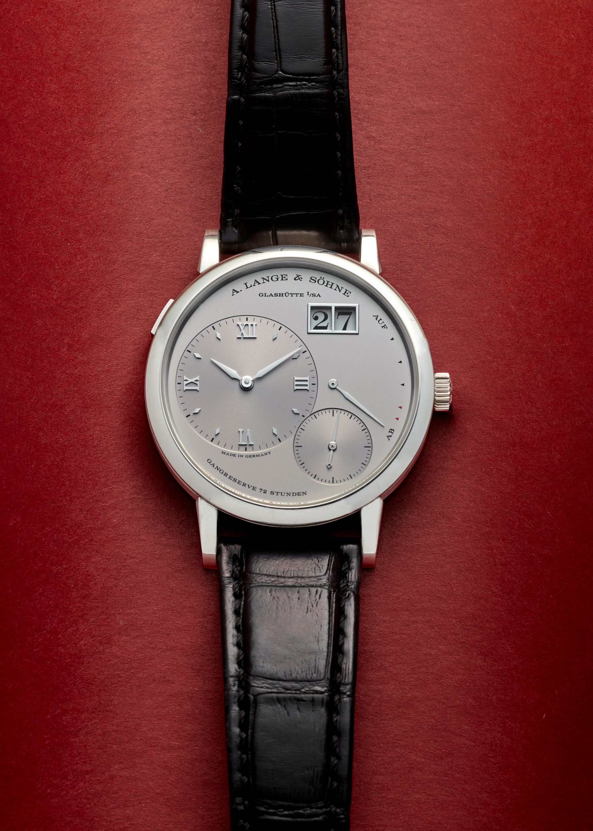 6089507: A. LANGE SÖHNE. A PLATINUM MANUAL WIND CALENDAR WRISTWATCH WITH POWER RESERVE INDICATION Grand Lange 1, Ref: 117.025, Purchased 13th April, 2019