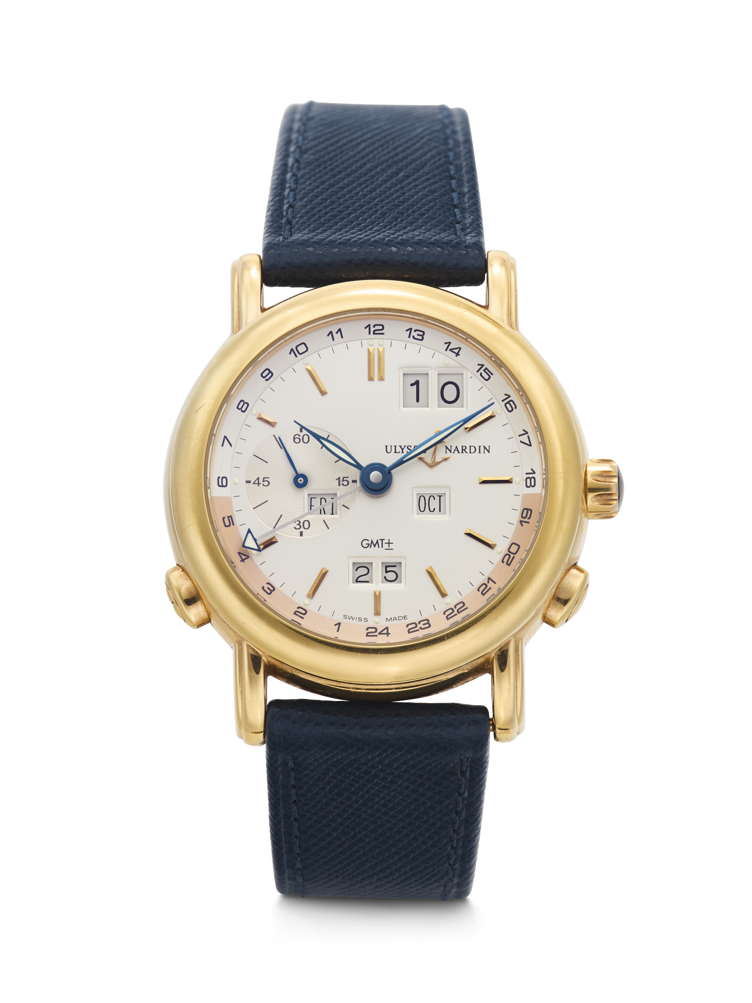 235: ULYSSE NARDIN, YELLOW GOLD 'GMT +/- PERPETUAL' WRISTWATCH WITH OUTSIZED DATE AND YEAR, REF. 326-22