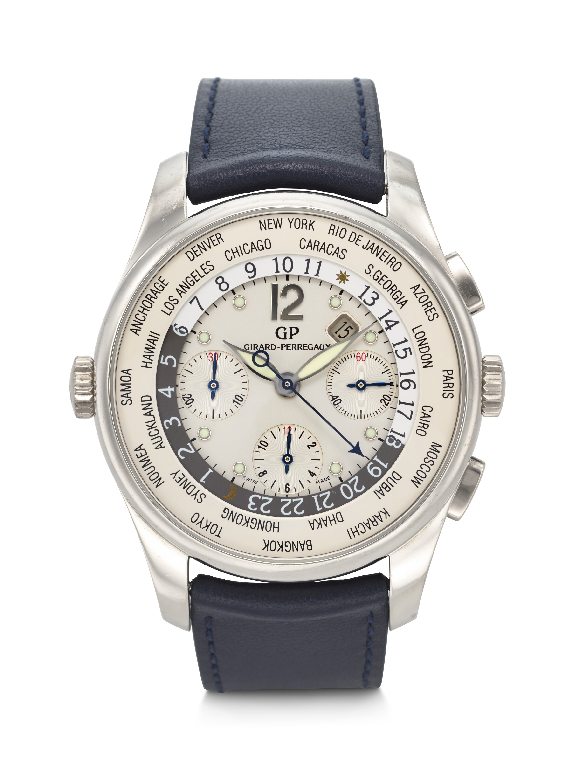 237: GIRARD-PERREGAUX, WHITE GOLD WORLD TIME CHRONOGRAPH 'TRAVELLER WW.TC' WITH DATE, REF. 49805