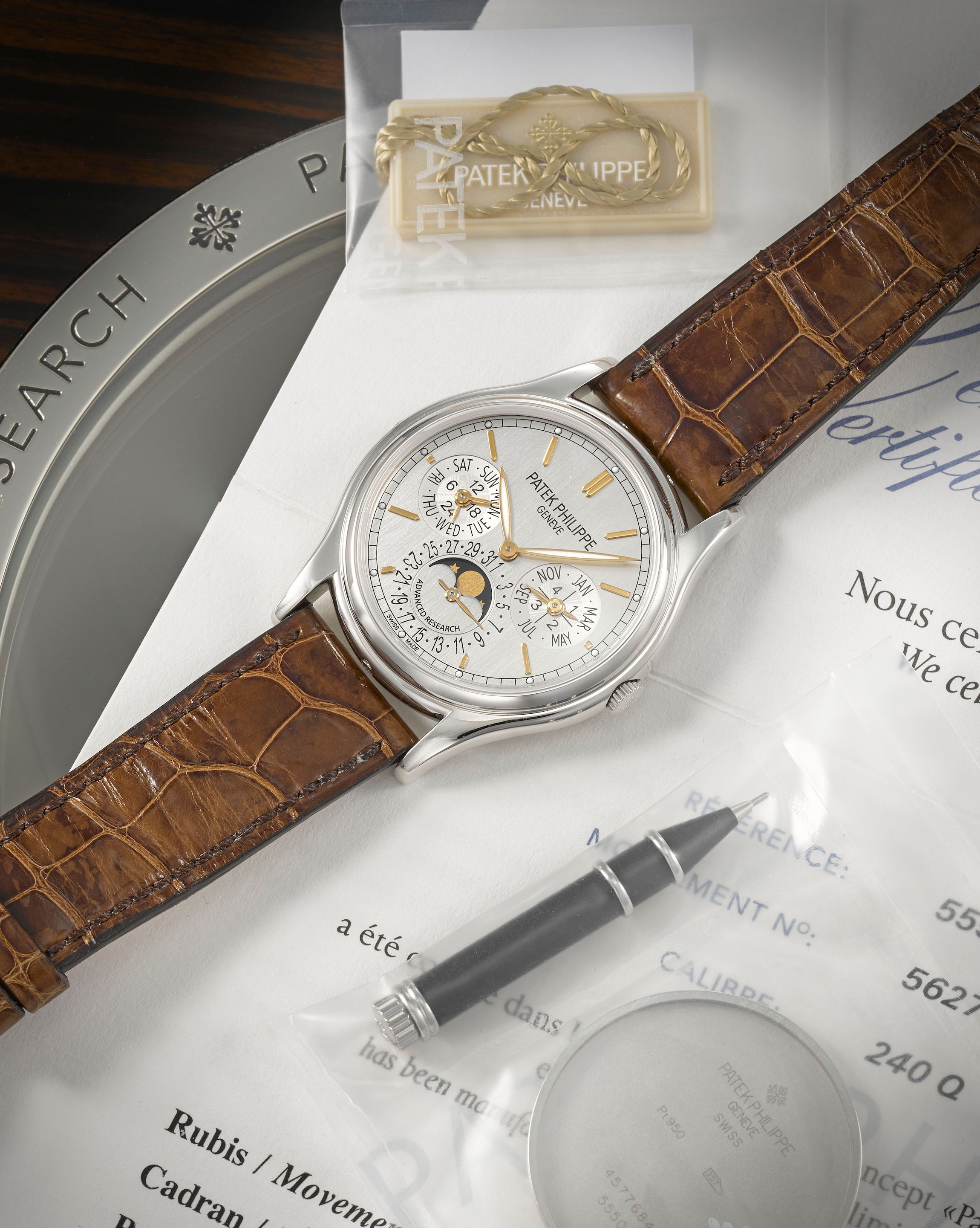 31: Patek Philippe. An extremely fine, rare and innovative Limited Edition perpetual calendar wristwatch with moon phase Advanced Research Perpetual Calendar, One of 300, Ref: 5550P-001, Purchased 19th September 2012