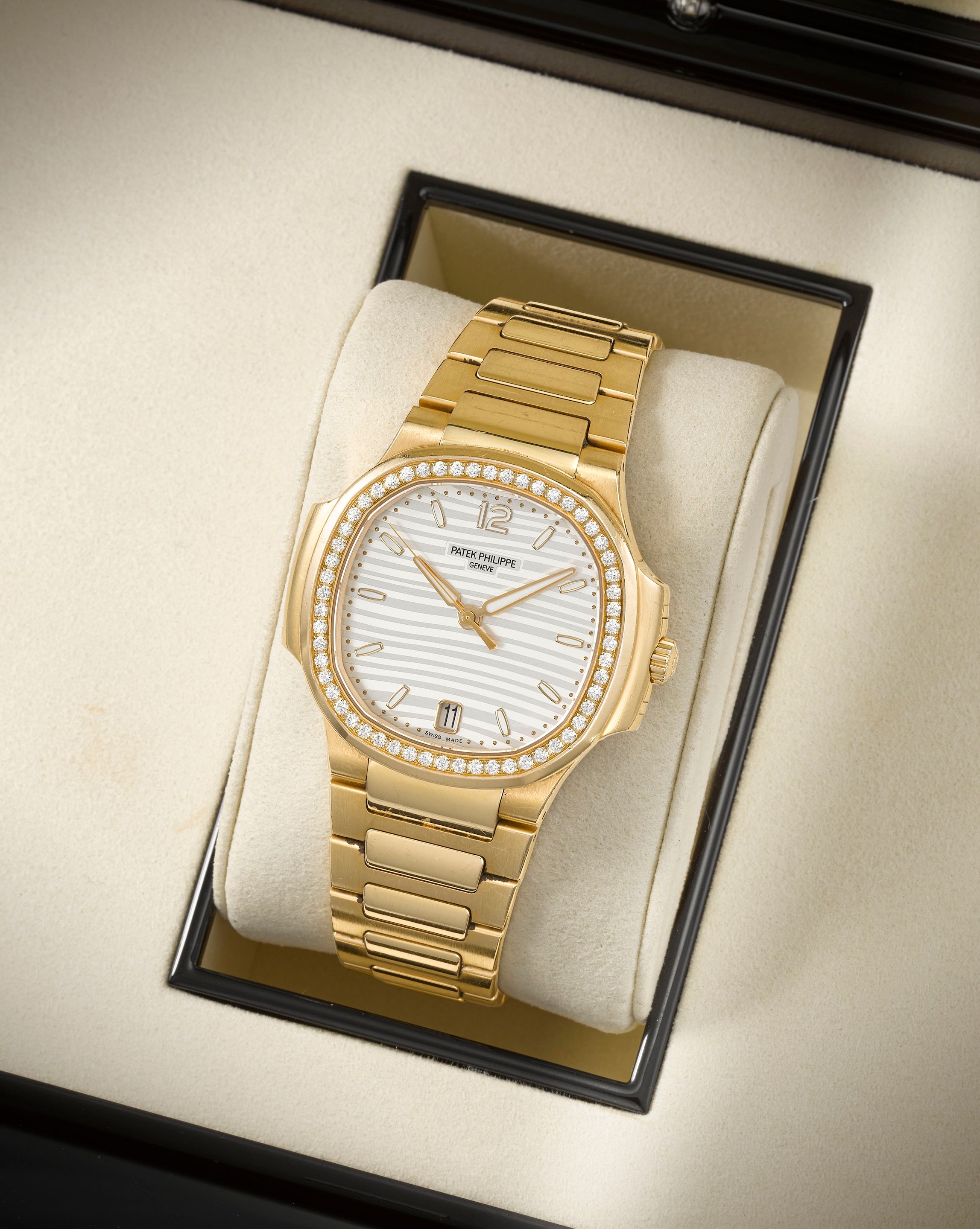 19: Patek Philippe. A very fine and rare Limited Edition Anniversary platinum diamond set automatic bracelet watch 40th Anniversary Nautilus, Ref: 5711/1P-001, one of 700, Purchased 7th September 2017