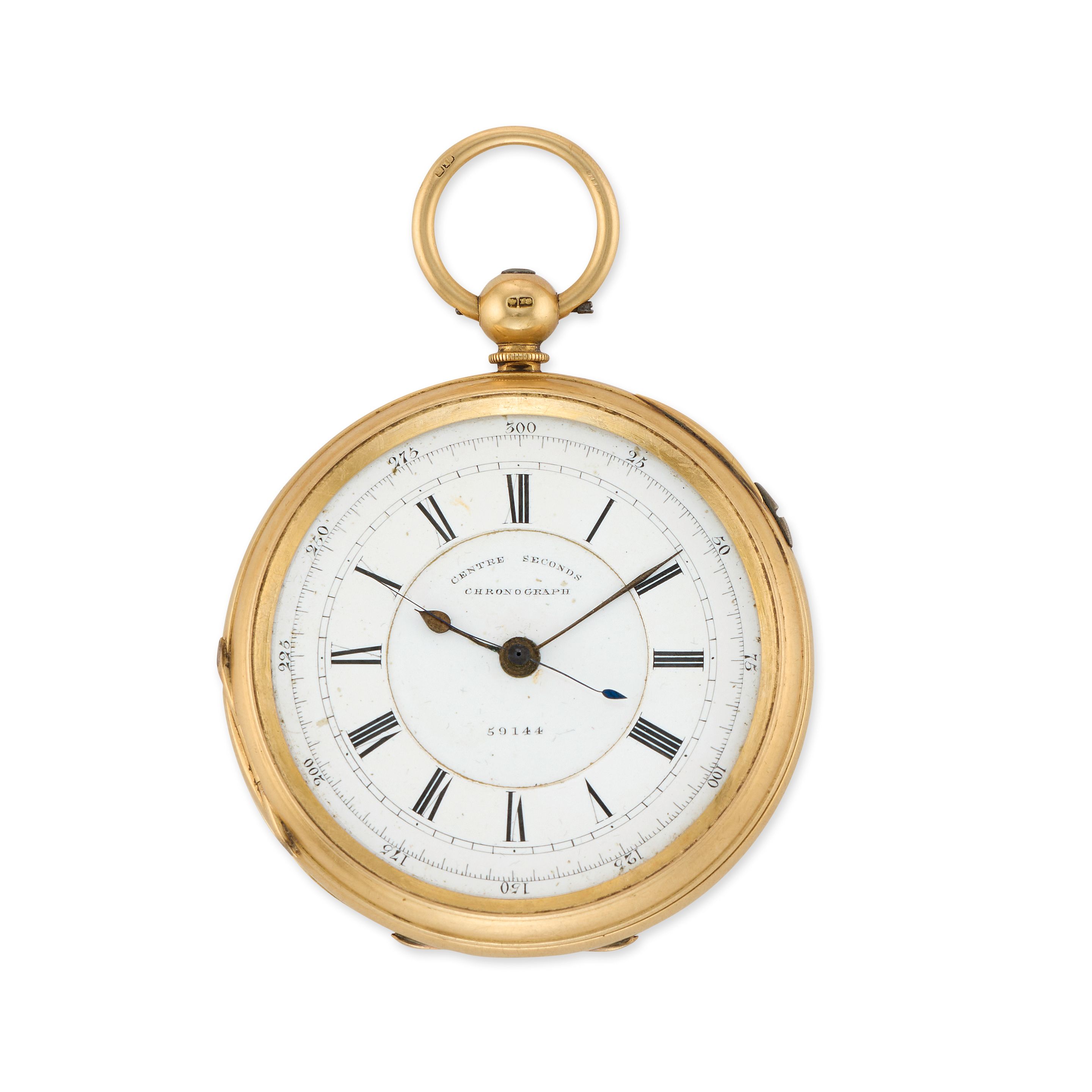 7: A steel keyless wind open face split second chronograph pocket watch Chronographe de poche à cadran ouvert et fonction rattrapante en acier remontoir au pendant Circa 1900