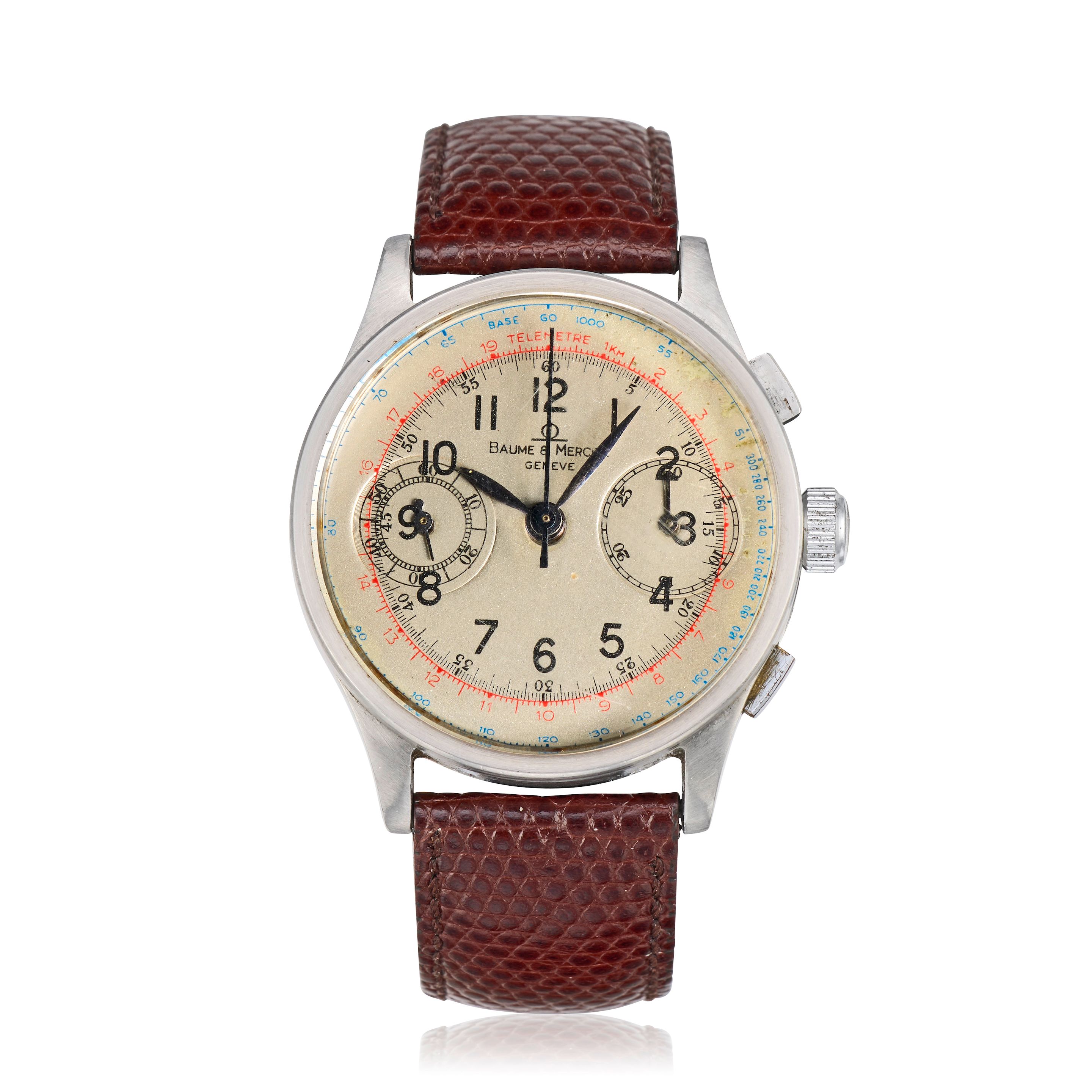 9: G.H. Guinand. A steel keyless wind open face chronograph pocket watch G.H. Guinand. Chronographe de poche à cadran ouvert en acier remontoir au pendant Circa 1910
